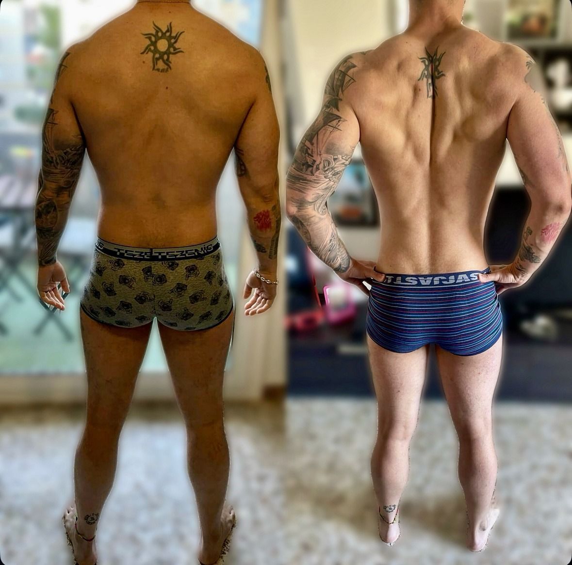 Edgar ha seguido al pie de la letra cada consejo y rutina que le he dado, y el resultado es espectacular. Después de un periodo de volumen y un simulacro de puesta a punto, hemos logrado una piel fina, cintura de avispa, y un físico fuerte y simétrico.
